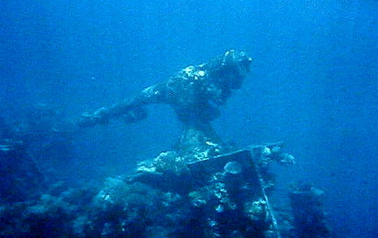 海底の墓標だ。機体のすぐ側には、翼に大きな弾痕の空いた羽が沈んでいた。